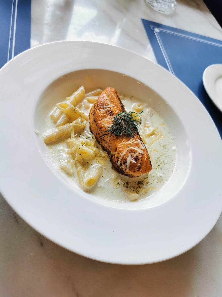 The moment you step inside, you're greeted by a warm and inviting environment. The setting is accentuated by a lush garden brimming with greenery, creating a serene retreat amidst the bustling city. As you enjoy your meal, you might even spot a friendly cat lounging nearby or gaze at the striking Amazon fish that adds a unique touch to the ambiance.